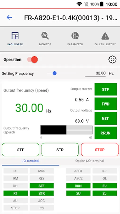 ・ Monitor (Output frequency / Output current / Output voltage / Operation status display / I/O terminal status)