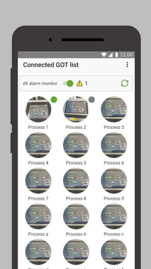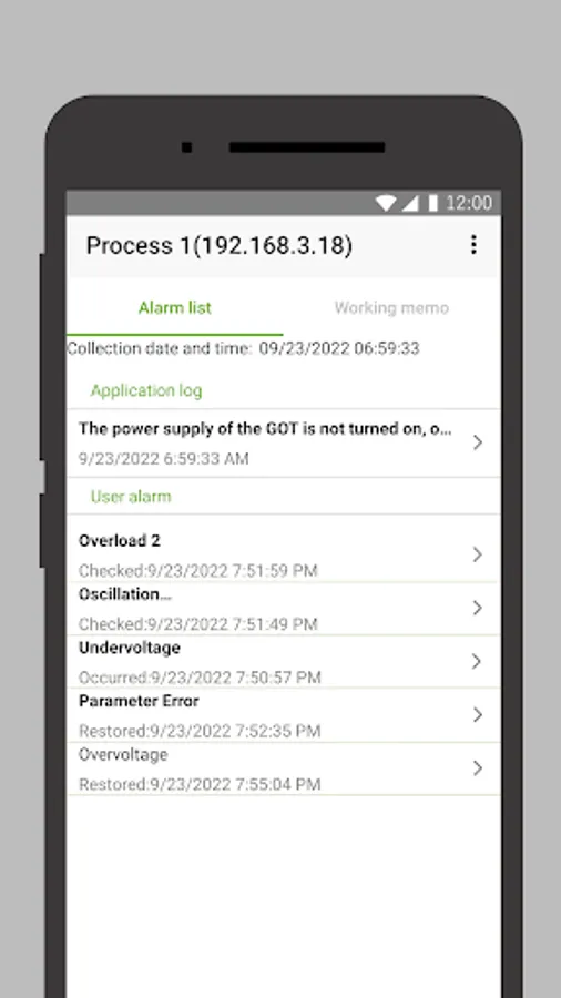 This function collects the status of user alarms occurring in the monitored GOT and notifies you with sound and vibration when a new alarm is detected.