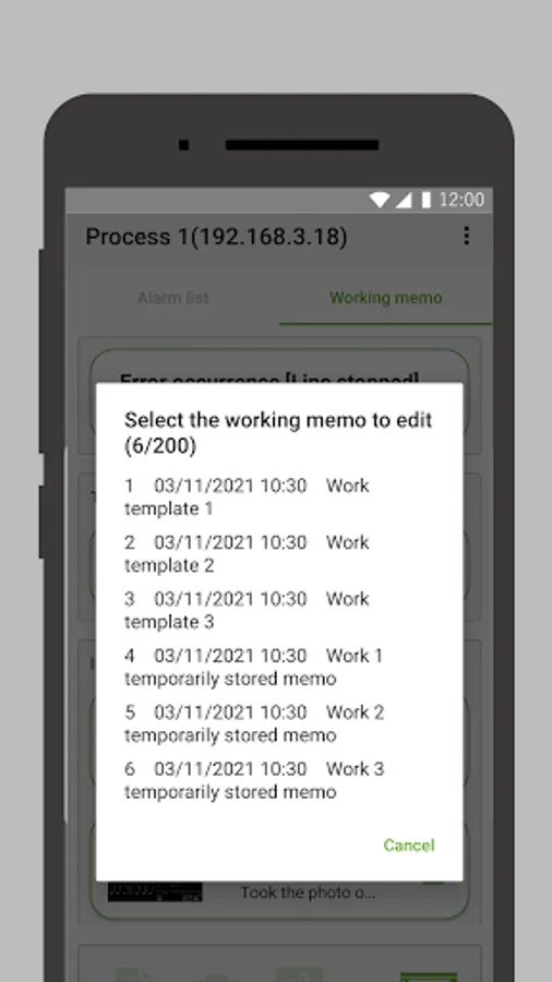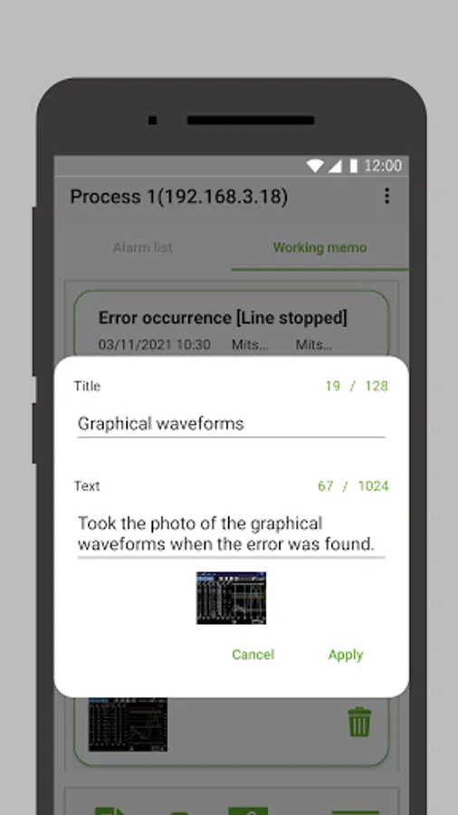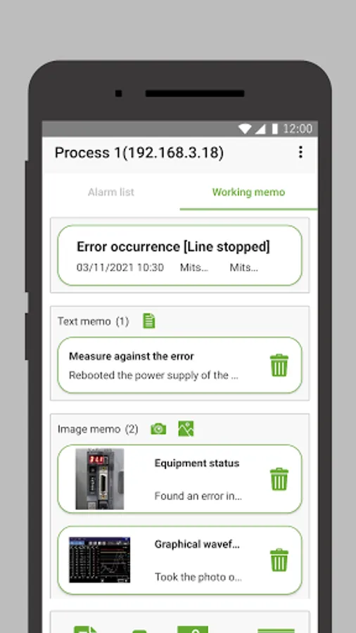 You can use working memos to record on-site equipment information and status reports in the event of an error, and share the information.