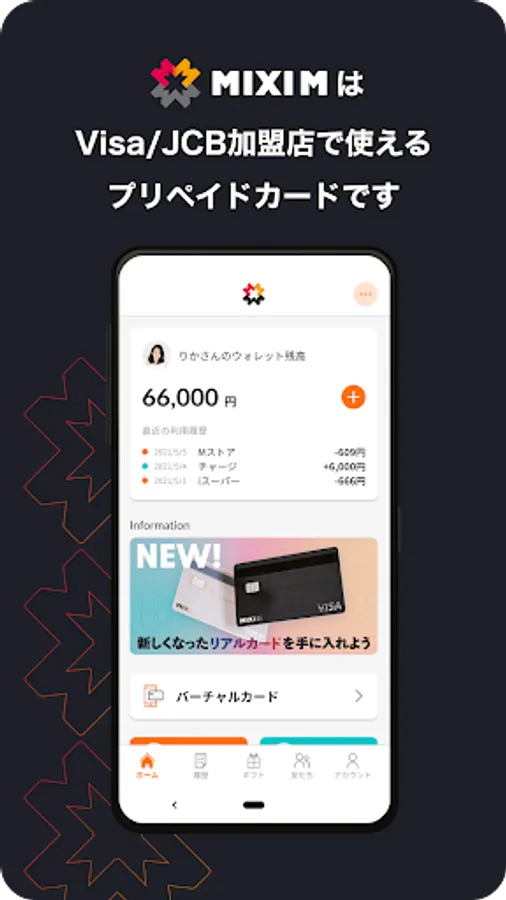 It is a branded prepaid card that can be easily issued on the app. Available at Visa and JCB merchants. (Excluding some member stores)