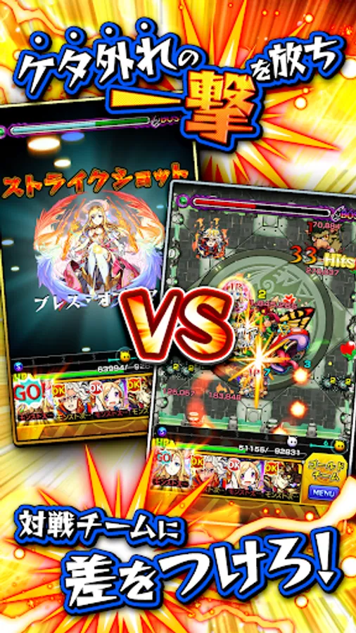 Playing with the characteristics of monsters and strike shots is the key to victory!