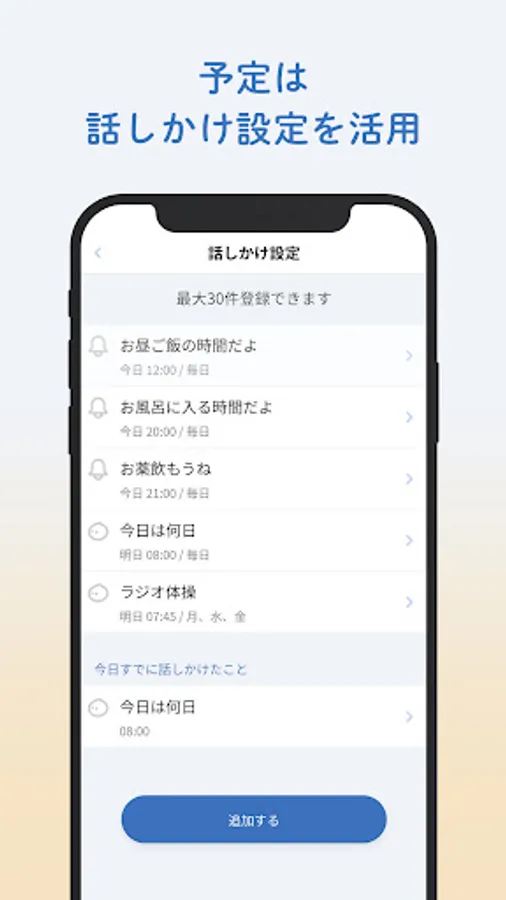 Useful functions such as weather forecast, alarm clock, timer, news, etc. will support your life in a cute way, and you can enjoy improving your skills with the English conversation function.