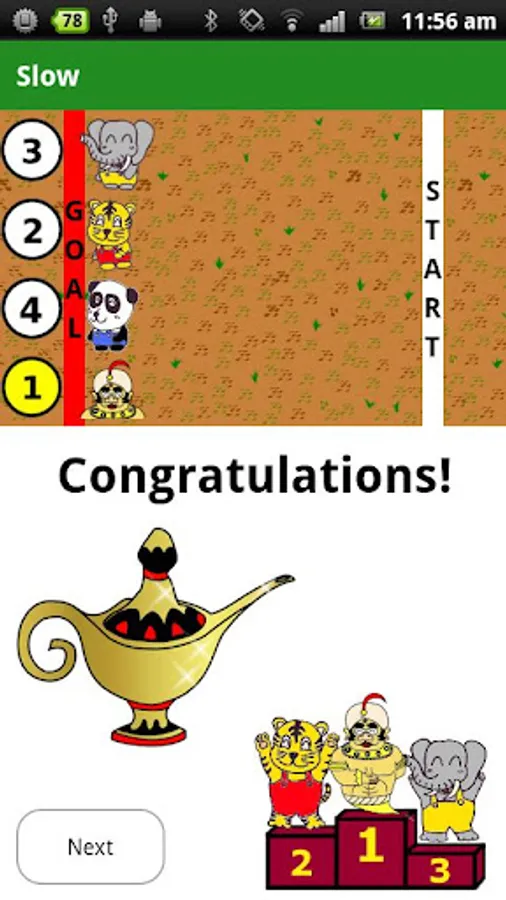 A genie of the lamp is locked up in a box. To rescue him, you turn into another genie and have races with 3 different animals. Then you can collect 6 gold lamps through playing games. You can also see surprising scenes on the screen every time you get lamps.