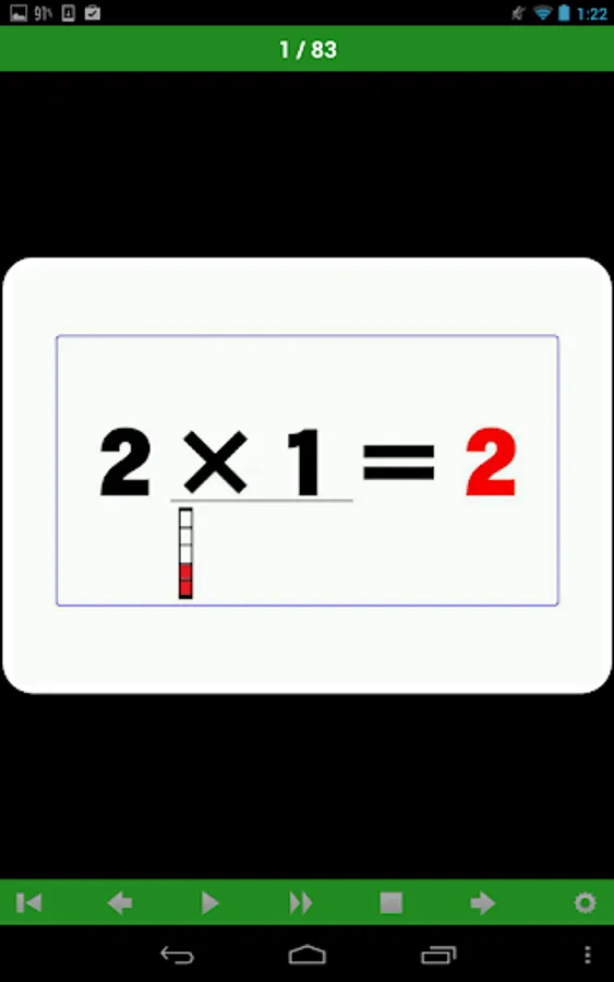 You see tiles which represent a certain number in a card for flash card-styled learning, so you can visualize the numbers and rules of calculations. Make sure you read out equations loud when doing flash card learning. Reading out them loud leads to hear their sound, and it gives you the ability to calculate.