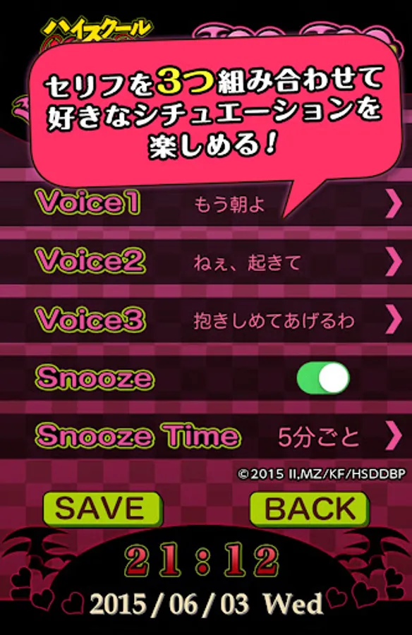 "Rias Alarm" can set up to 3 voices from among those prepared for the alarm.