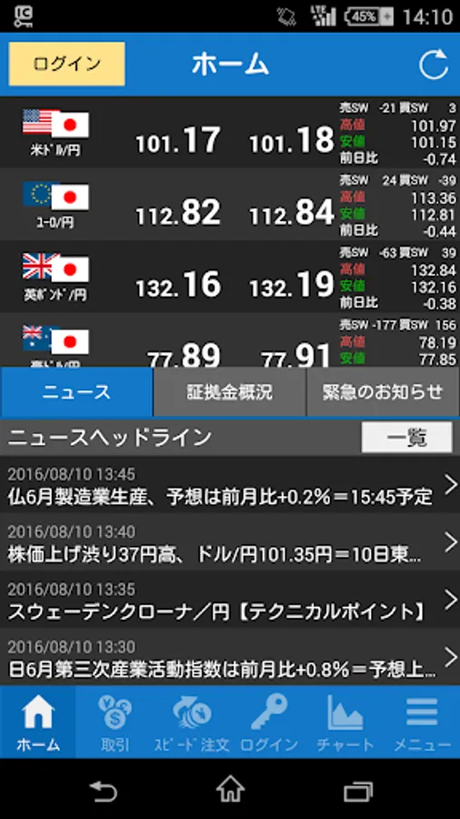 投資情報:ログイン前でも利用可能なテクニカルチャートを搭載。ニュース・経済指標もご覧いただけます。