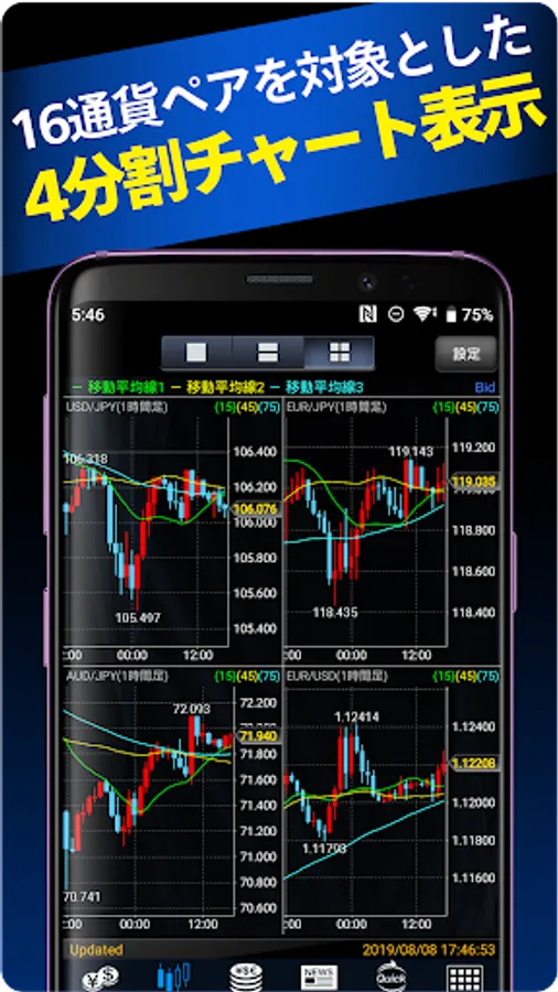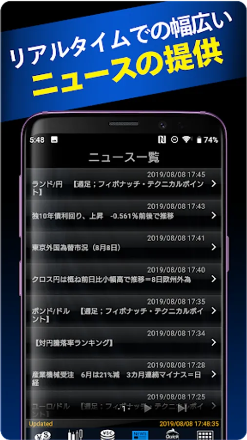 --Deliver news in real time. You can easily check the investment information (exchange market conditions, VIP statements, economic indicators, market events, etc.) that are indispensable for trading Forex. It covers a wide range of information such as stocks, bonds, and commodity prices as well as foreign exchange.