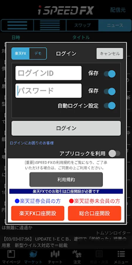 ・Rakuten Securities account ID and password are required to log in and use the service. Please open an account through Rakuten Securities website.