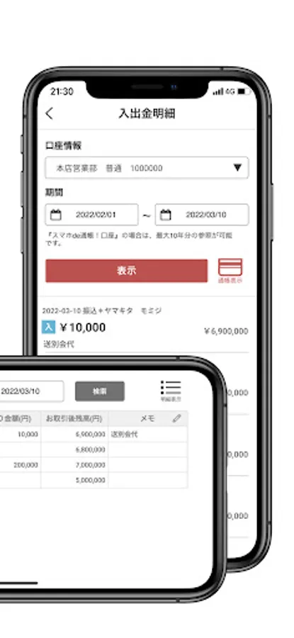 ・Inquiry of deposit and withdrawal details of ordinary deposits and savings deposits (with passbook display and memo entry function)