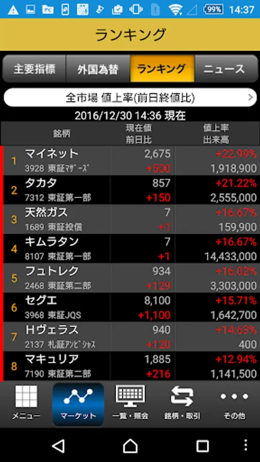 In addition to the stock ordering function such as, you can also browse investment information such as various indicators, rankings and news.
