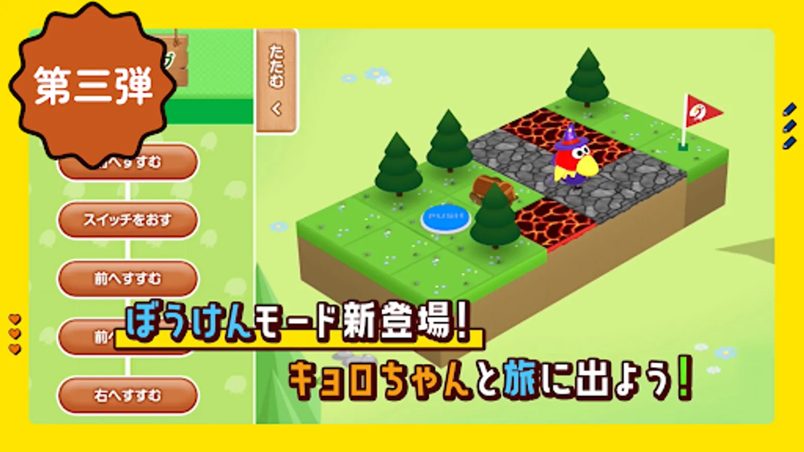 A new stage has been added in which Kyoro-chan adventures through programming.