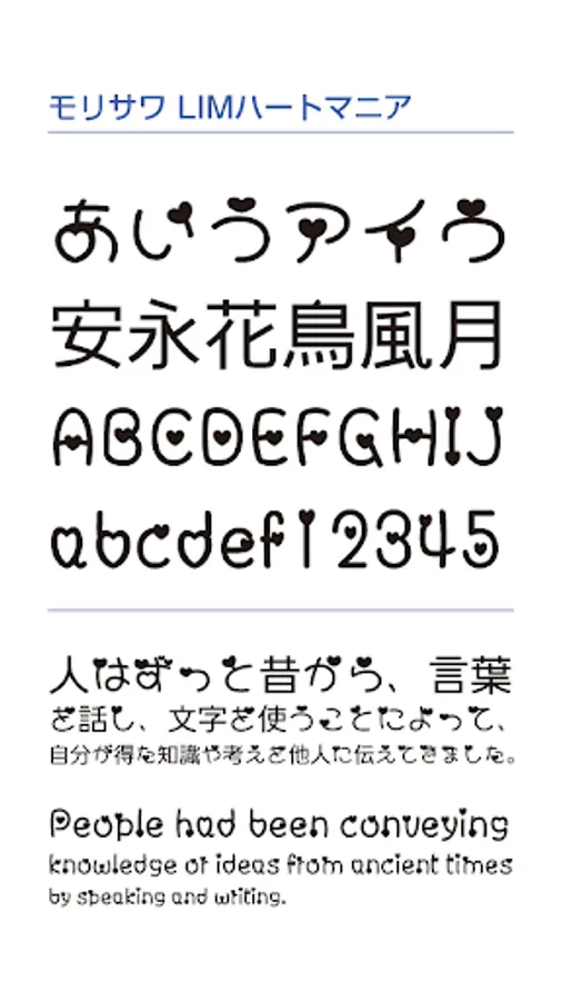 A pack of 3 fonts provided by Morisawa, "LIM Heart Mania/LIM Pon Ashiato/LIM Daridari".