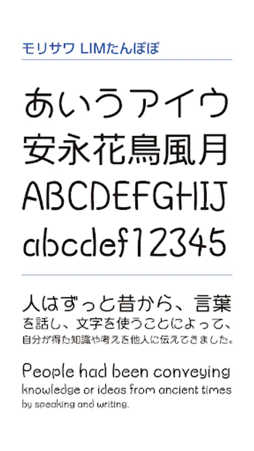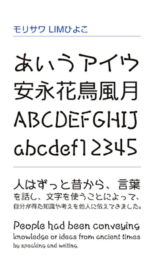 A 3-type pack of fonts "LIM Hiyoko/LIM Tanpopo/LIM Vanilla" provided by Morisawa.