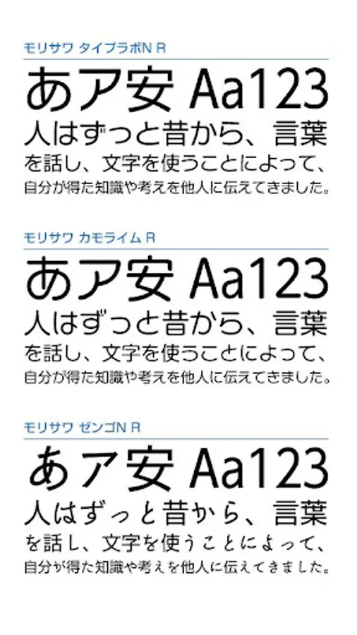 Morisawa Font Gothic "Type Lab N R", "Zengo N R", Maru Gothic "Kamo Lime R" can be used on the terminal.