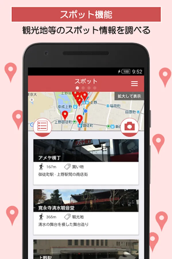 「観光地」を「ゆったり、ぷらっと歩く」をコンセプトにした、観光を "より楽しく""より便利に"するスマホの無料アプリケーションです。