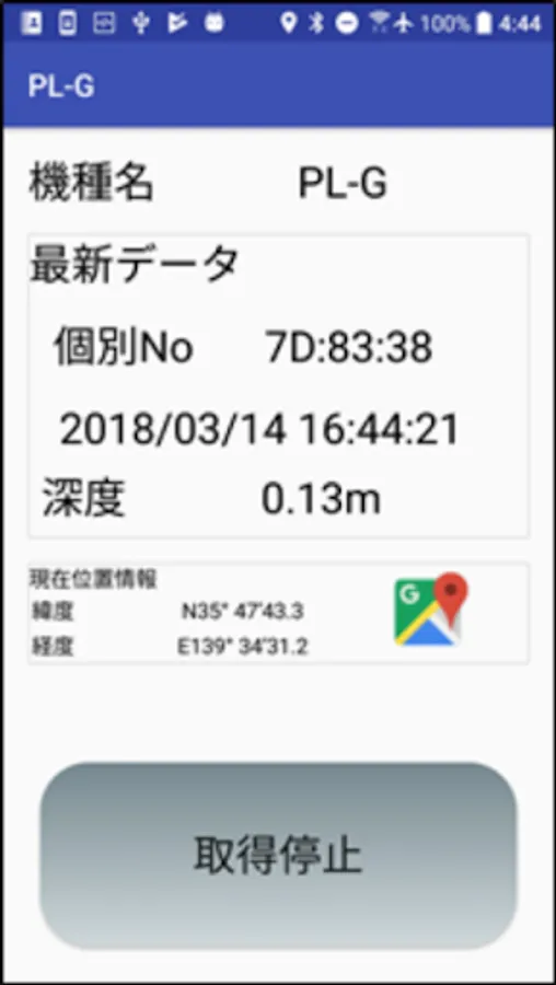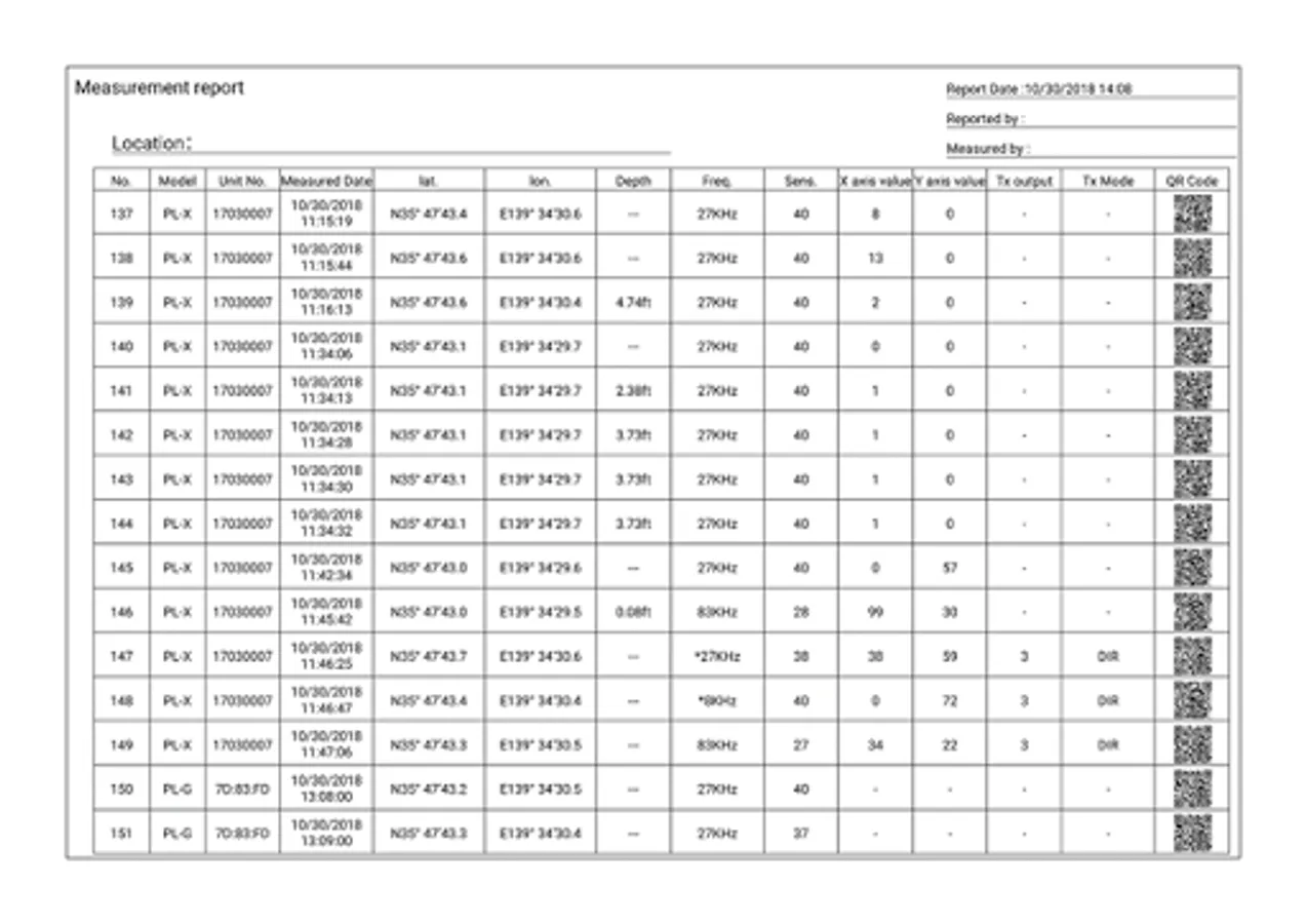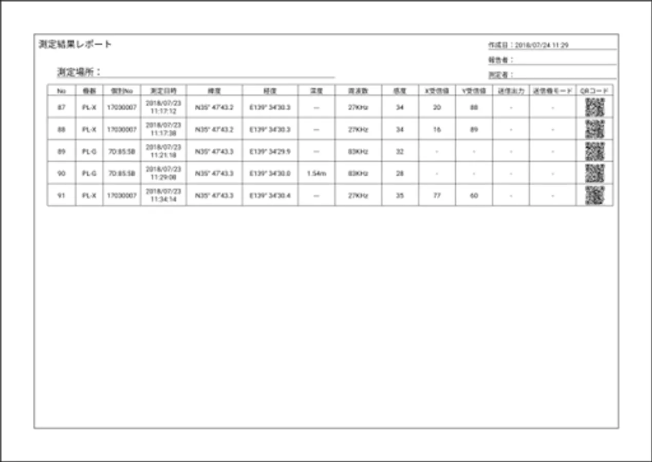 By using in conjunction with Fuji Tecom Co., Ltd.'s steel pipe detector PL-X or PL-G, measurement data (depth, frequency, etc.), measurement date and time, and GPS coordinates of smartphone are stored together, and evidence of field work (evidence・ I leave a trace).