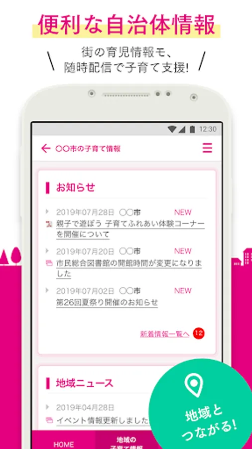 * Some of the functions that can be used, childcare information that is distributed, information on childcare support facilities, etc. may differ depending on the area where you live and the municipality.