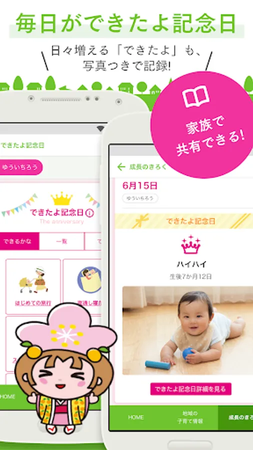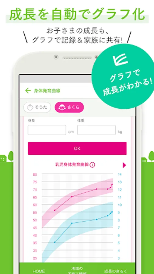 Not only the height/weight of the child, but also the weight of the baby in the womb and the maternity weight of the mother are easily recorded and graphed automatically, so you can see the growth at a glance.