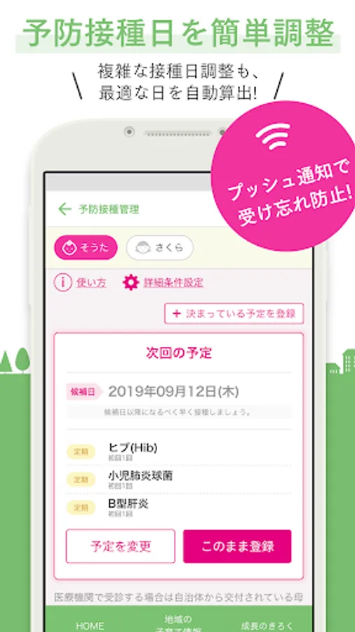 Automatically calculates the optimal vaccination time according to the date of birth and the actual vaccination date, and notifies you in advance when the due date approaches.