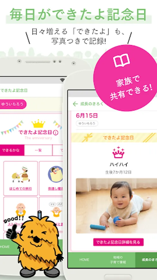 Smile Chestnut Navi! The data recorded in can be shared with fathers and parents who live far away.
