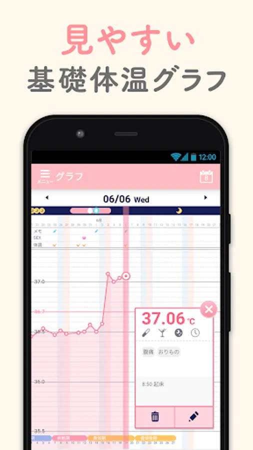 If you record your basal body temperature, the graph will be drawn automatically, so it's easy, keep going!