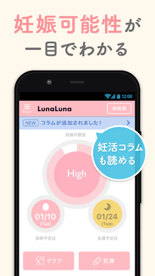 In addition, the current pregnancy possibility (whether it is easy or difficult to get pregnant) is displayed on the home screen to support pregnancy efforts!
