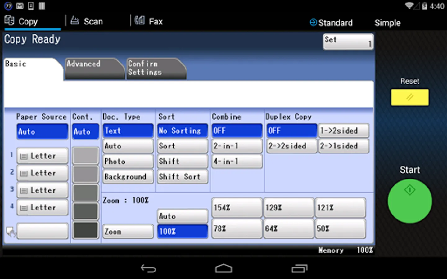 RemotePanel is a free application for the MFX-3535/MFX-3595 to operate Muratec MFPs via Wi-Fi using a Tablet device.