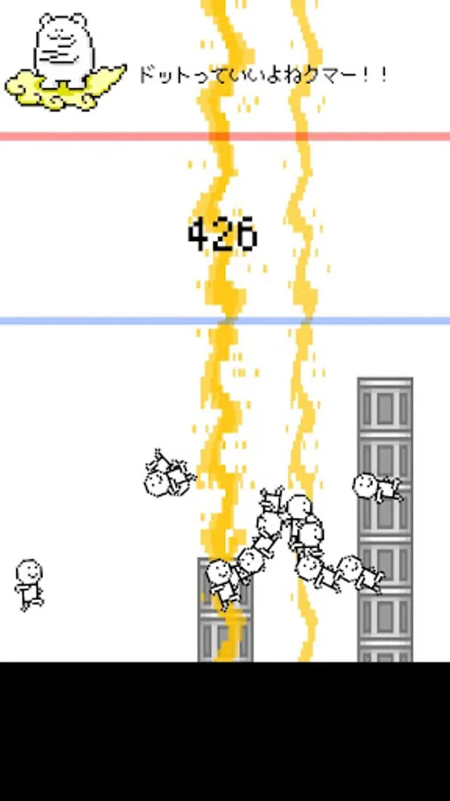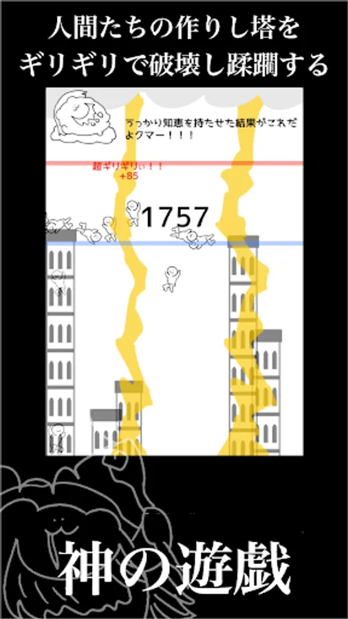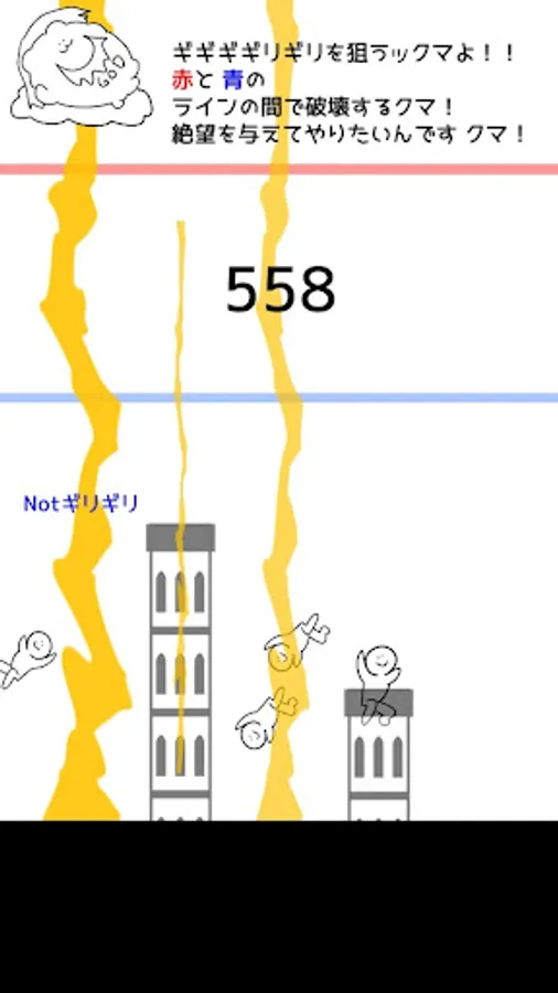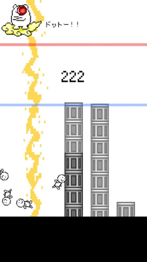 · If the tower passes the red line, the game is over. Also, if you destroy it before the blue line, lightning can not be dropped for a certain period of time.