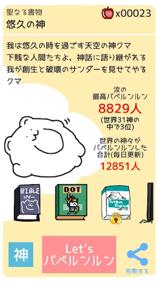 · When you destroy the tower, you can rarely get the fruits of wisdom. You can use this fruit on the home screen to give human wisdom to God and change the trend (changing the trend will change the visual of the game as well)