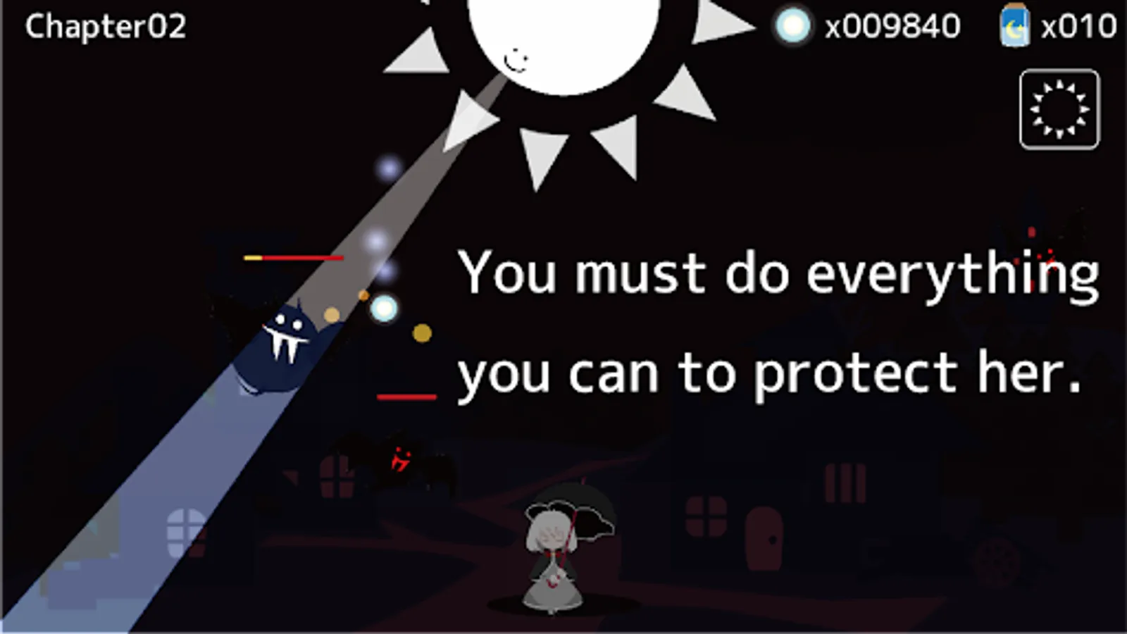 In this unique defense game, you take control of the sun to guard a young lady on her nighttime stroll. Except this young lady just so happens to turn to ash in the sunlight. So you'd better be careful where you're pointing those rays!