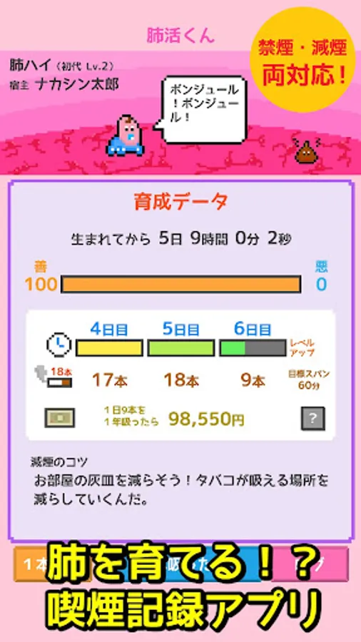 Supports non-smoking and reduced smoking! A fun smoking record game that feels like a game is now available.