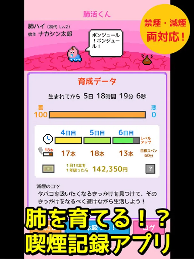 ◆Grow your lungs! ? A fun smoking record app