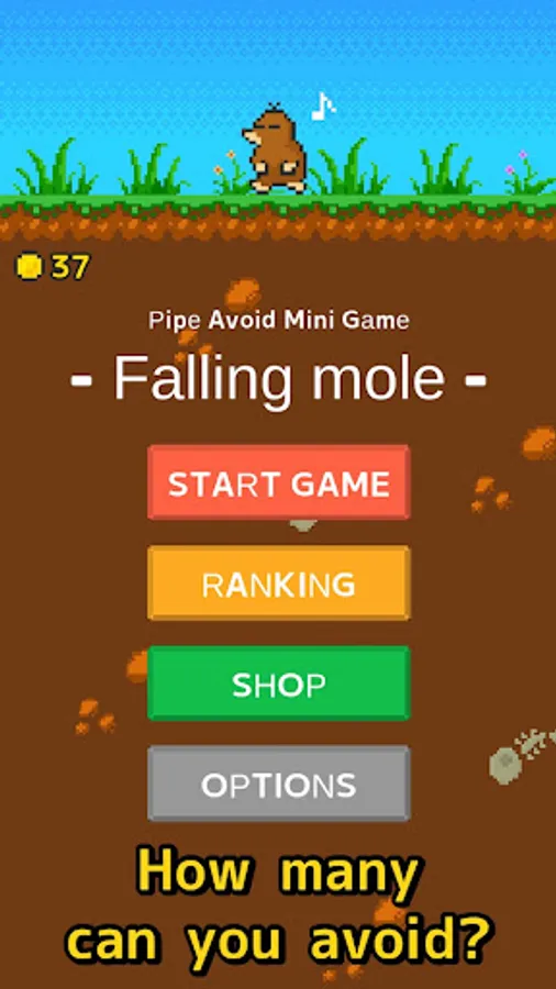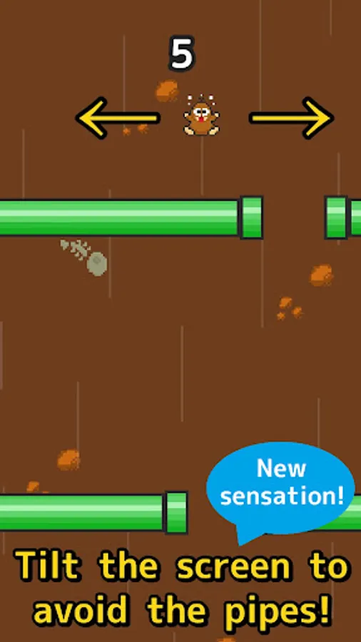 Tilt your device left and right to control Mogu-chan and avoid the pipes coming up from below.