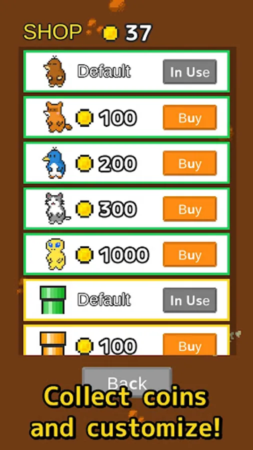 You can get new animals or change the color of the pipes with the coins you've earned.