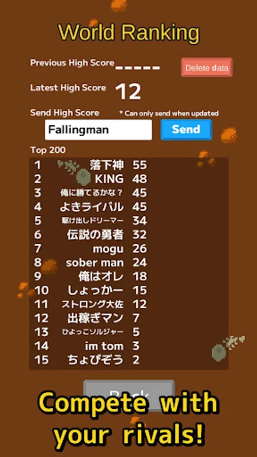 When you update your best score, you can send it from the ranking screen and compete with rivals worldwide.