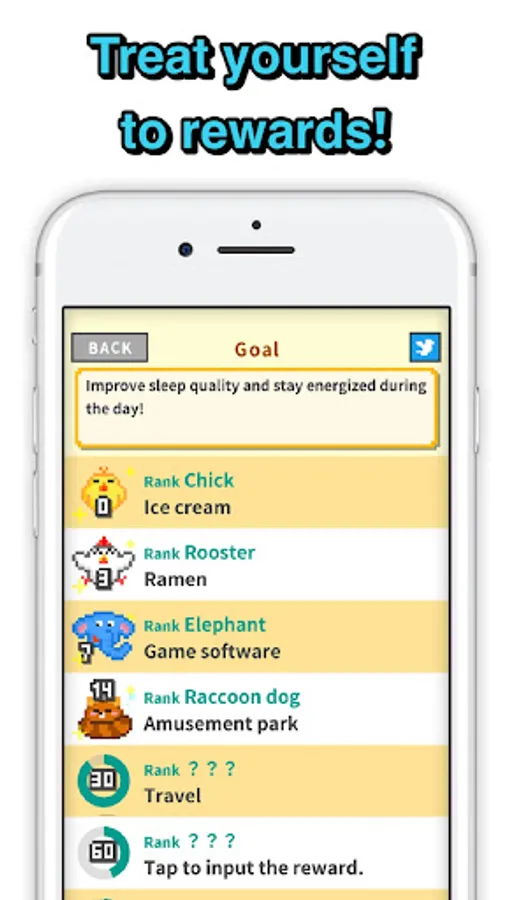 6.To share your quit-smoking status on Twitter or LINE, press the "Twitter" button in the top right corner of the screen. Your quit time and screenshot will be automatically entered for posting.