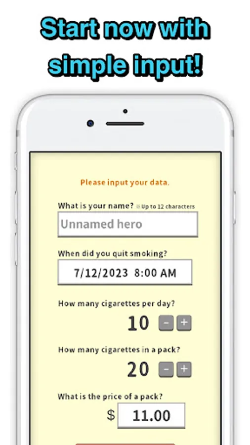 Enter your smoking information to automatically calculate quit time, money saved, and time gained.