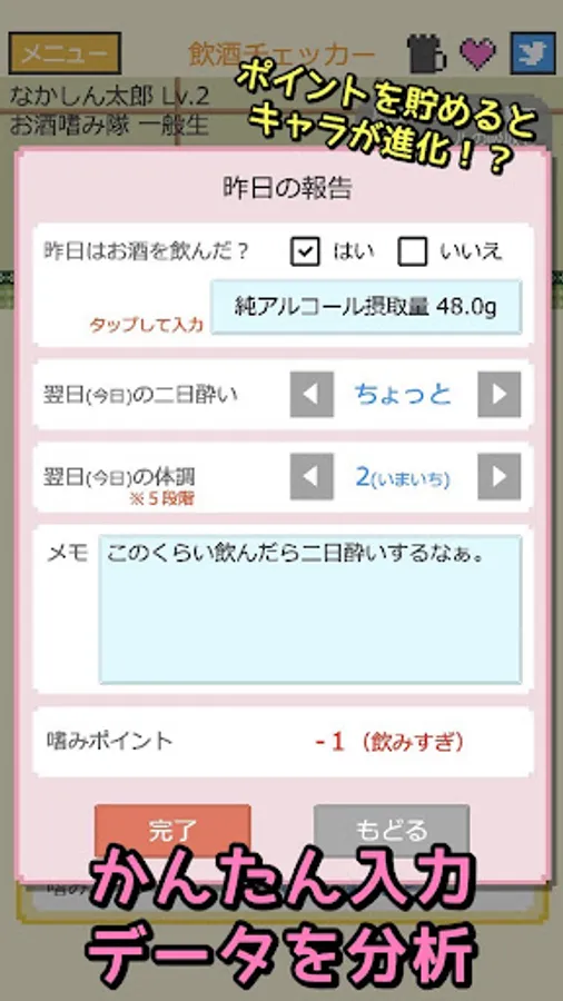 It doesn't just record how much you drink, it analyzes your hangover data to find your "right amount"!