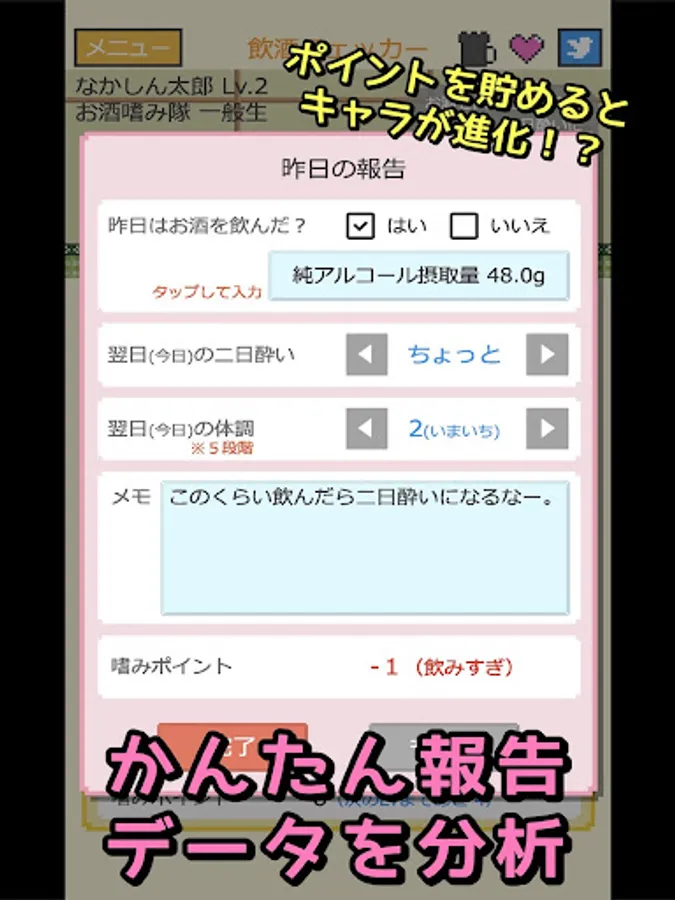 ・Reduce the amount of alcohol in a fun way like a game