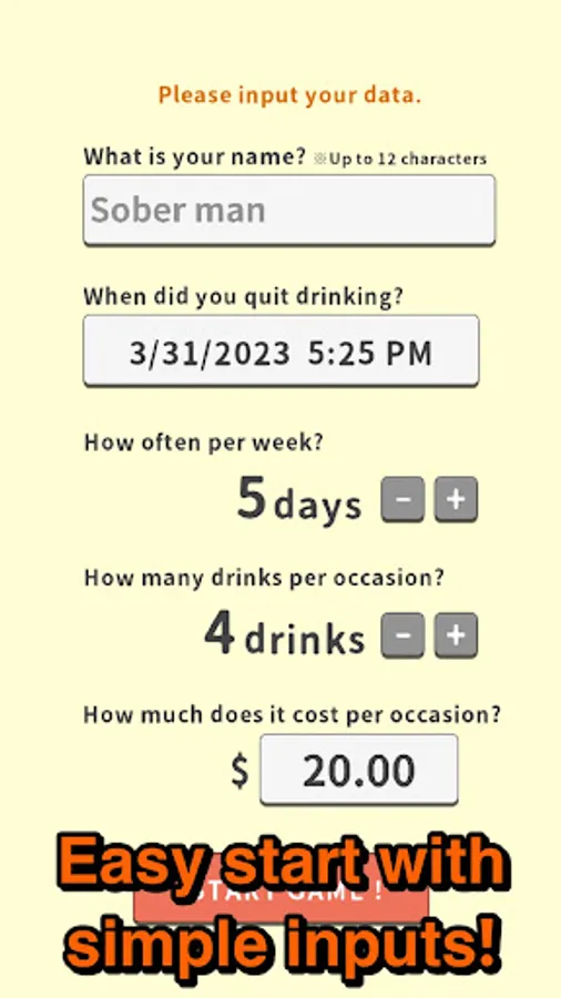 Enter your drinking data and the app will automatically calculate the time you've been sober, the number of drinks you've avoided, and the amount of money you've saved. You can also record your daily weight changes.