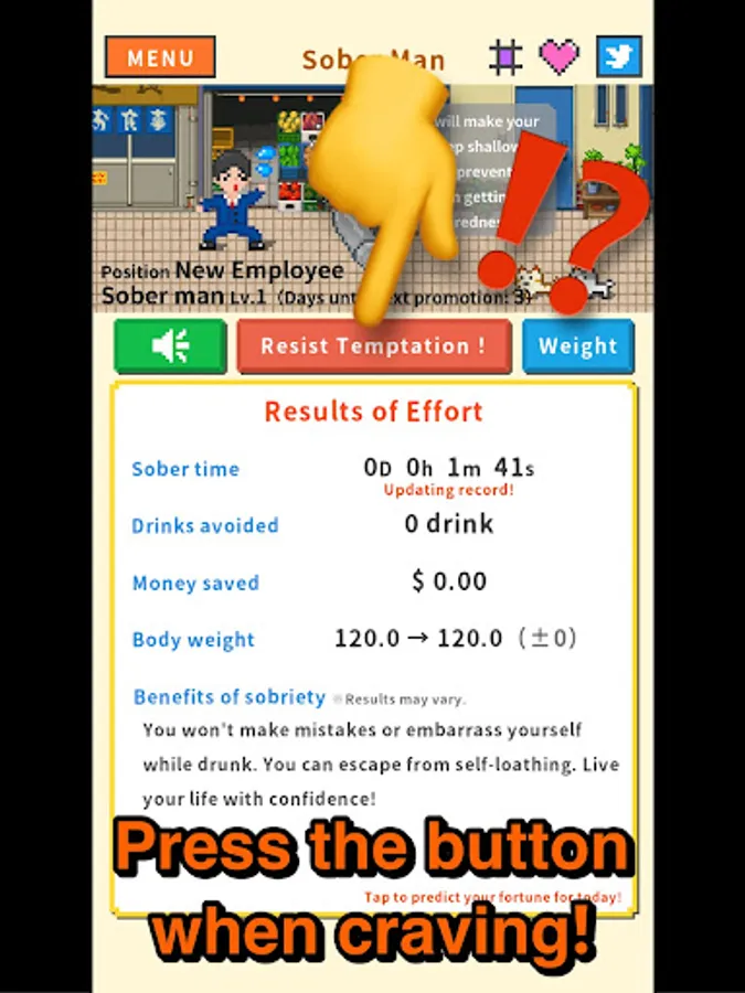 4.If you want to drink, press the "Resist Temptation!" button to get advice.