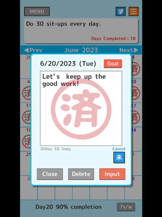 Let's fill your calendar with "済" stamps!