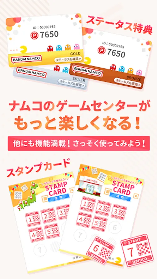 ・ Check in at Namco stores and earn mass points by completing numerous missions!