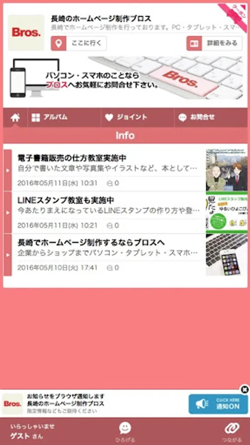 長崎でPC・タブレット・スマホ自動対応のホームページ制作を行っております。また自分で簡単更新できるホームページシステムもお取り扱いしております。また、マンツーマンによる初心者向けのパソコン教室・LINEスタンプ登録教室・電子書籍登録教室も実施しております。興味がおありの方、ぜひお気軽にお問合せくださいませ。