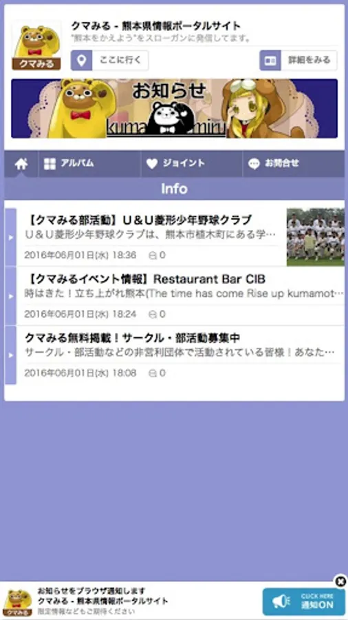 Kumamoto Prefecture General information portal site of "Kumamiru" is, until the tourist spot from gourmet, is a community search site that gathered a lot of information. And the notification type home page also introduced "Let's change the Kumamoto" to the slogan we work hard staff.