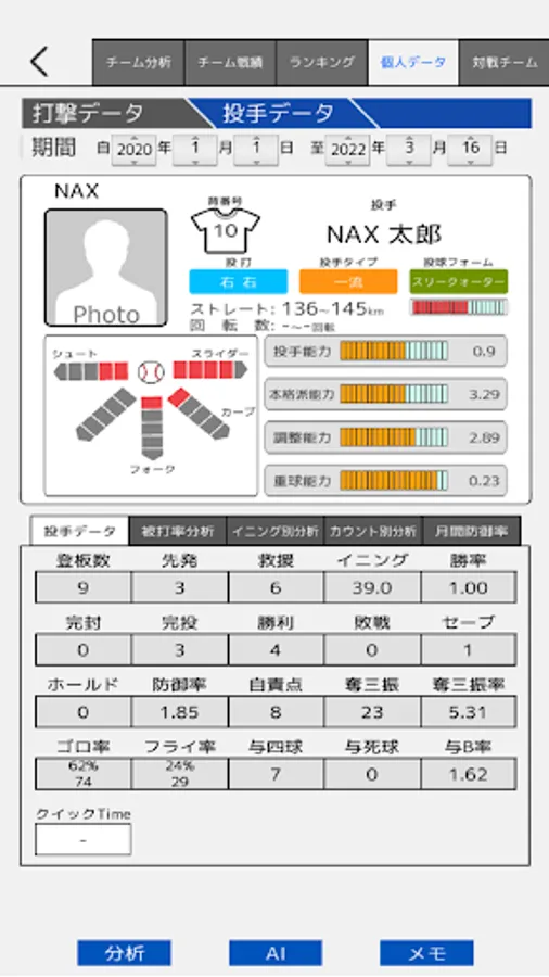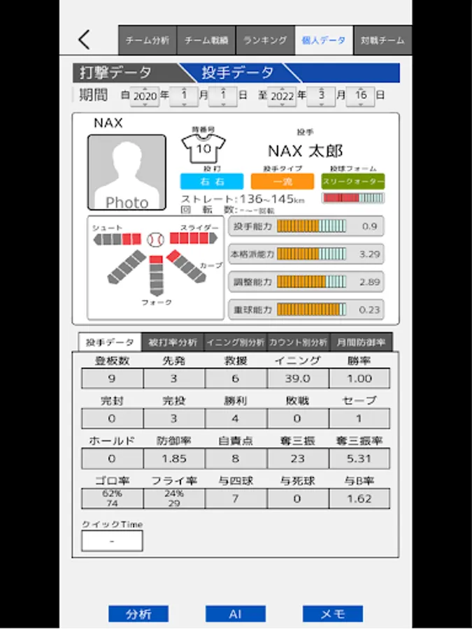 ・ Display the analysis of each player in an easy-to-understand manner with data and graphs