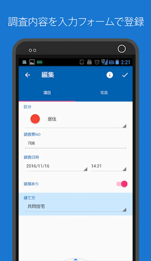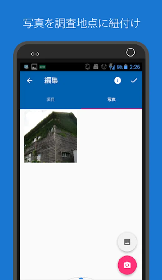 ・カメラで撮影した写真と、調査地点データを関連付けて管理できます。