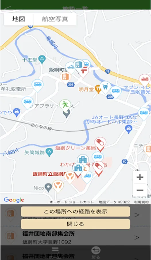 You can search for public facilities in the town by category or name. You can also check the detailed information of the facility, the display on the map, and the route search to the destination. You can also call us directly.