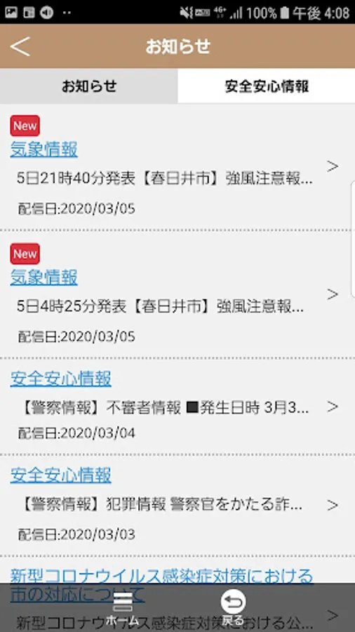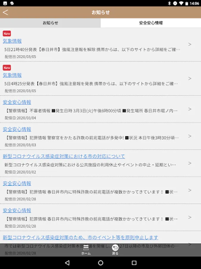 We will deliver and display information from Kasugai City, weather information, safety and security information, etc.