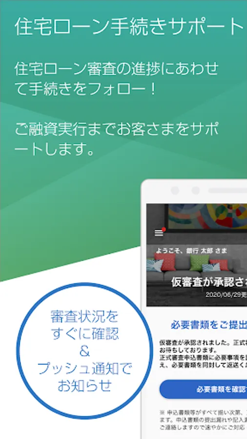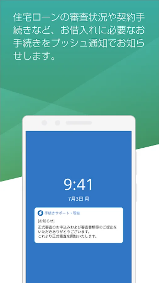 We will immediately check the procedures necessary for borrowing, such as the examination status of the mortgage loan you have applied for and the contract procedure, and will notify you by push notification.